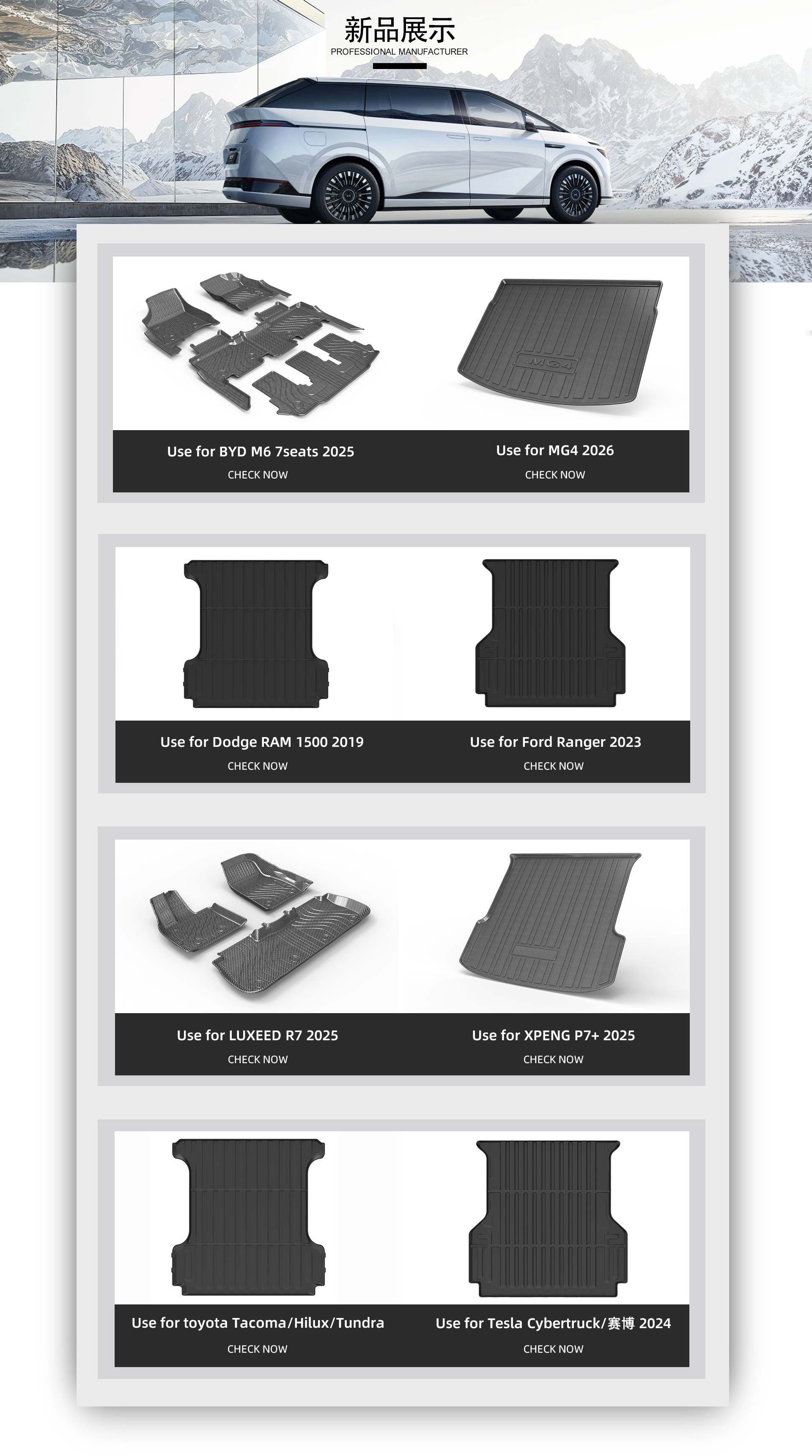 we are a comprehensive entity enterprise specialized in the research, production , sales OEM of products. we are focusing on 3D Car floor mat, 3D trunk mat,3D engine cover.